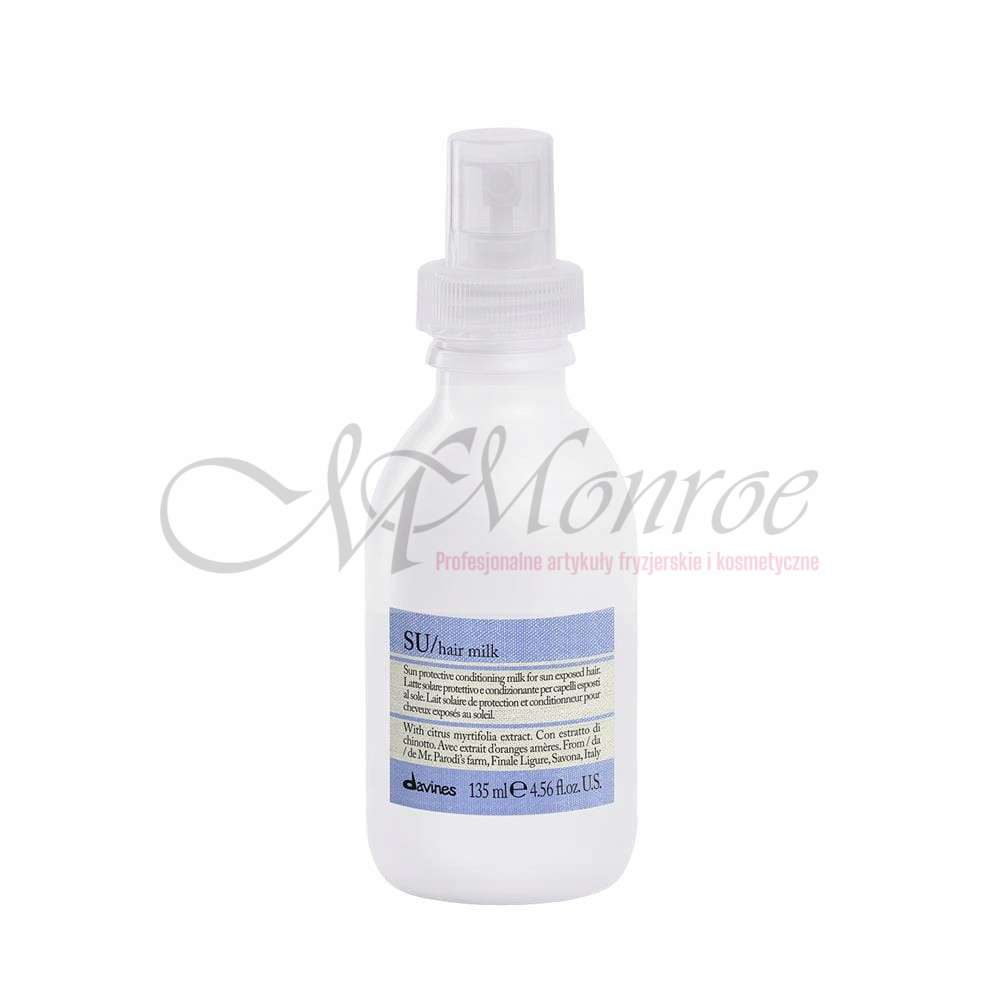 Mleczko do włosów SU Hair Milk zmiękcza włosy i chroni je przed promieniami słonecznymi dzięki filtrom UVA i UVB. Chroni kolor włosów i zapewnia im optymalny poziom nawilżenia. Ułatwia rozczesywanie włosów, a jednocześnie pozostawia je lśniące i miękkie. To wielofunkcyjny produkt, który może stosować zarówno przed, jak i po ekspozycji na słońcu. W swoim składzie zawiera wyciągi z pomarańczy Chinotto z Savony, która posiada właściwości antyoksydacyjne i przeciwzapalne.