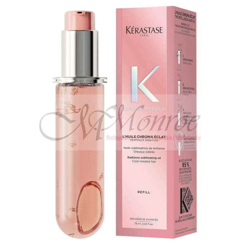Chroma Absolu Huile Cicagloss marki Kérastase to odbudowujący olejek do włosów farbowanych. Zapewnia włosom ochronę przed blaknięciem i sprawia, że kolor pozostaje żywy na dłużej. Olejek wnika we włosy, uzupełnia wilgoć na długości i tworzy barierę ochronną. Z nutami kardamonu, zrównoważonymi tuberozą i kwiatem pomarańczy oraz bazą z drzewa sandałowego i piżma. Ochrona termiczna do 230°C. Opakowanie uzupełniające jest wykonane w 95% z plastiku pochodzącego z recyklingu