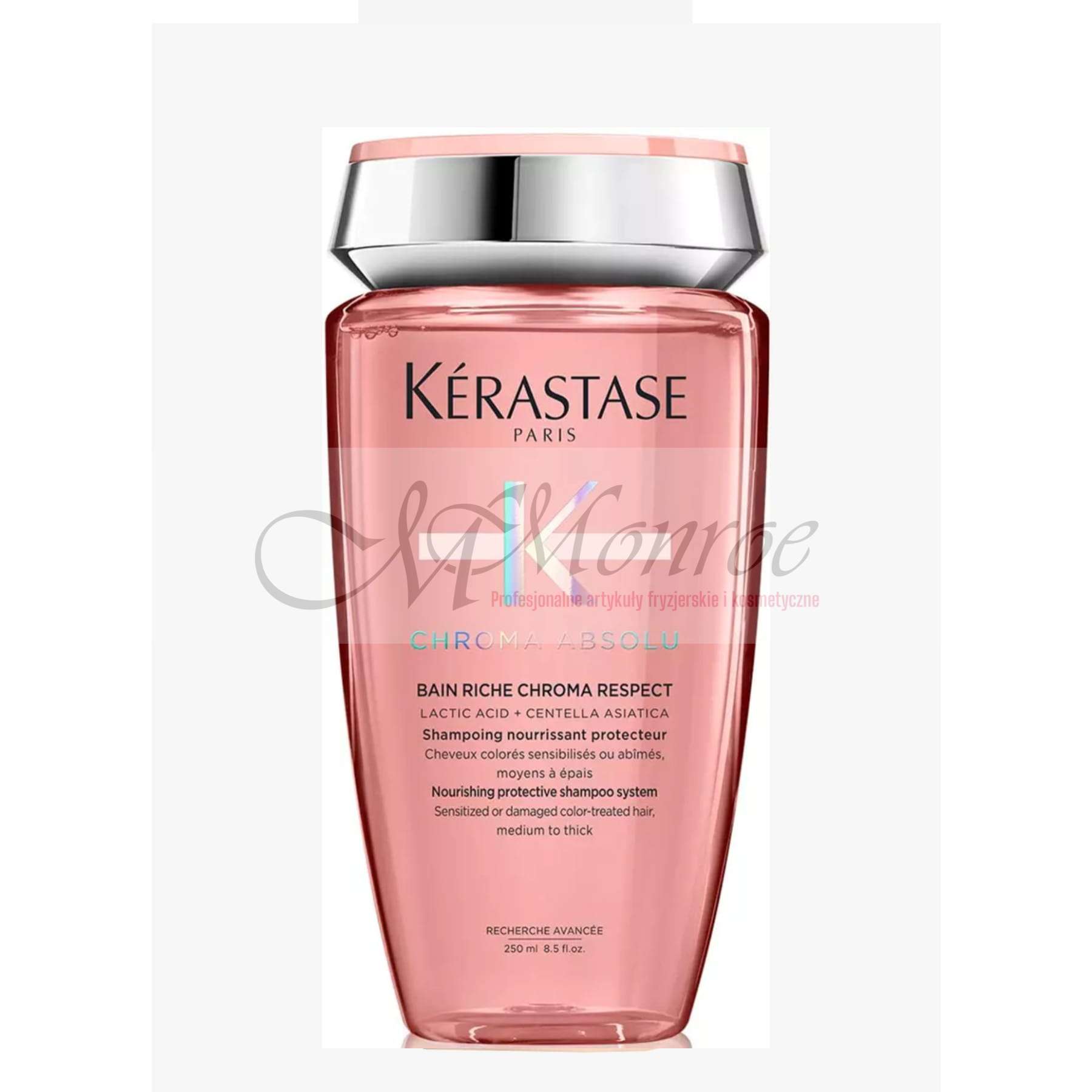Kérastase Chroma Absolu Bain Riche Chroma Respect to profesjonalny szampon przeznaczony do pielęgnacji włosów farbowanych, szczególnie średnich i grubych. Jego bogata, odżywcza formuła delikatnie oczyszcza włosy, jednocześnie chroniąc kolor przed wypłukiwaniem i blaknięciem.