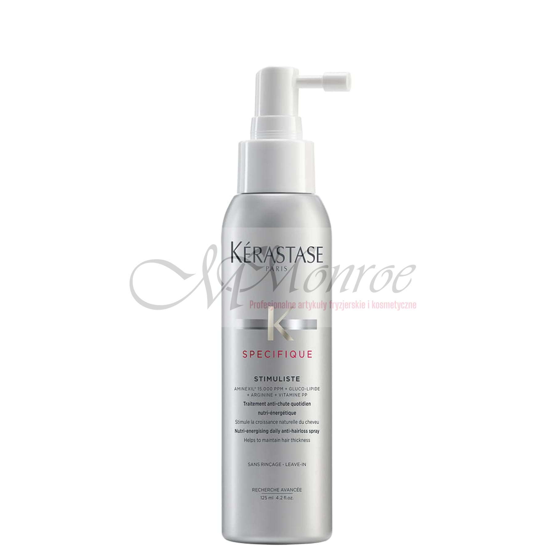 Specjalistyczny preparat stymulujący wzrost włosów i zapobiegający ich wypadaniu. Dzięki zawartości kompleksu Aminexil oraz argininy, wzmacnia cebulki włosowe i poprawia mikrokrążenie skóry głowy. Regularne stosowanie sprayu sprawia, że włosy stają się mocniejsze, gęstsze i bardziej odporne na uszkodzenia.