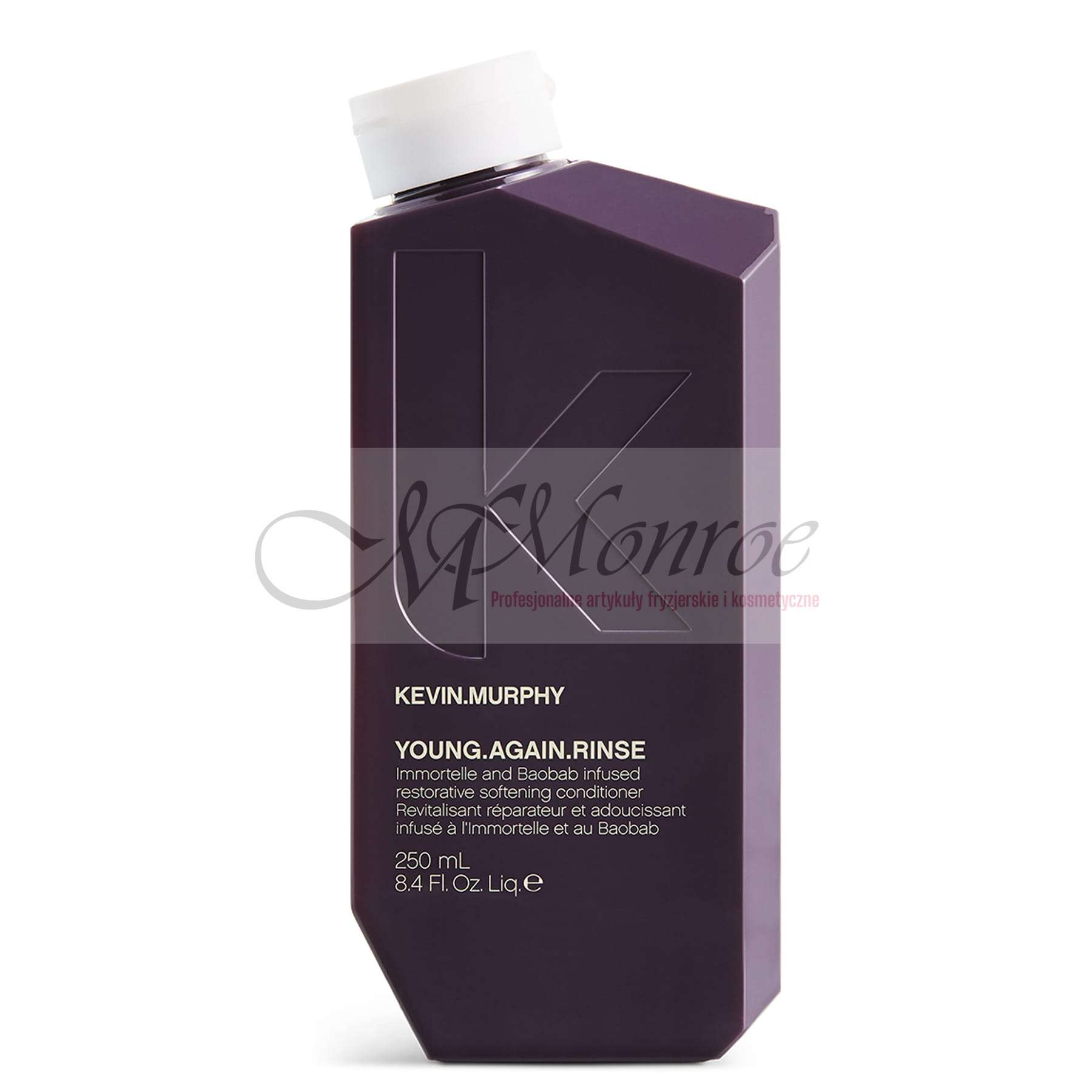 Odżywka odmładzająca włosy Kevin Murphy Young Again Rinse. Odmładzająca, zmiękczająca i odbudowująca włosy odżywka Kevin Murphy z wyciągiem z kwiatu immortelle oraz baobabu. Specjalnie opracowana formuła wygładza i nawilża włosy oraz chroni je przed puszeniem. Dzięki temu włosy pozostają miękkie, elastyczne oraz pełne blasku.